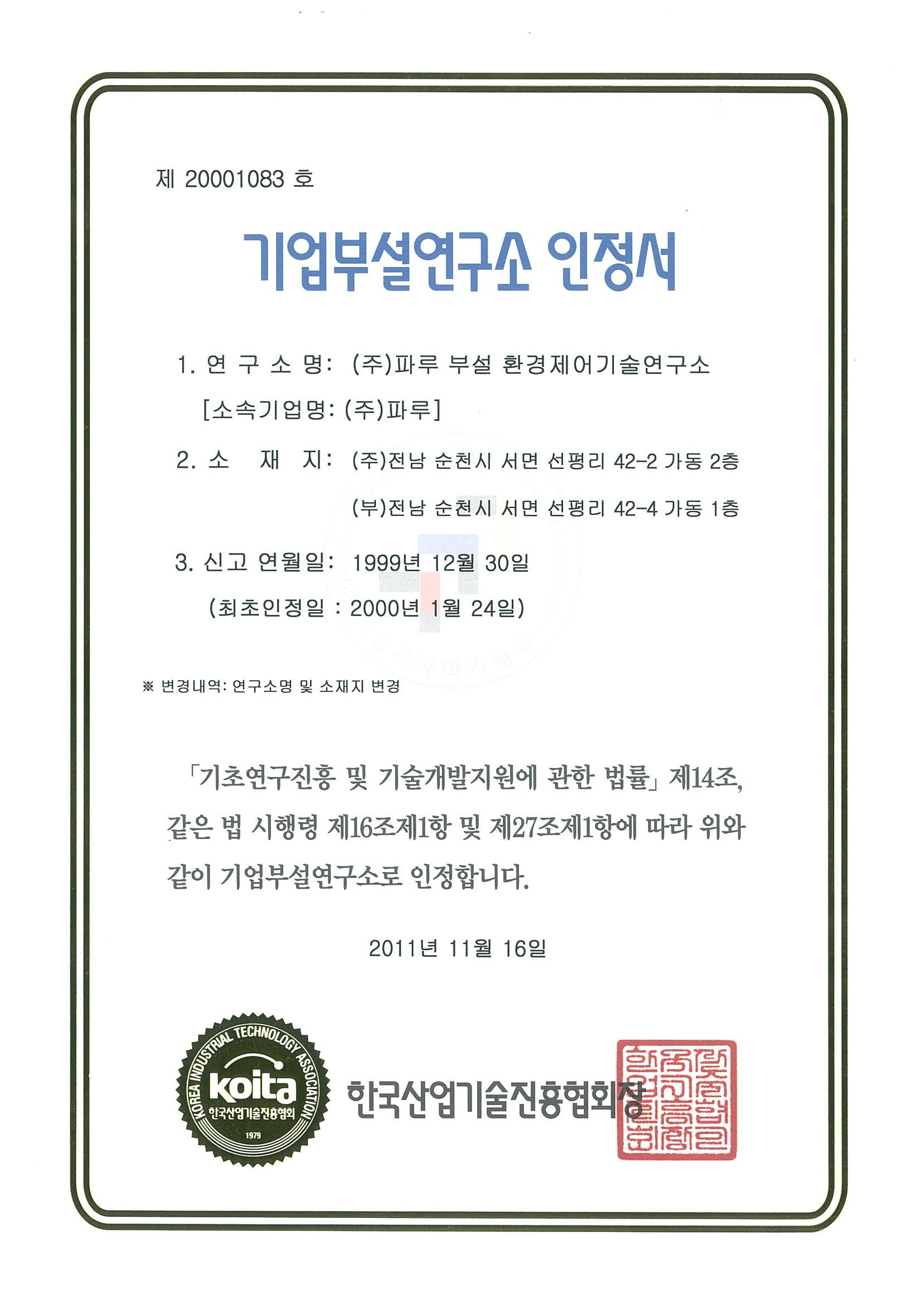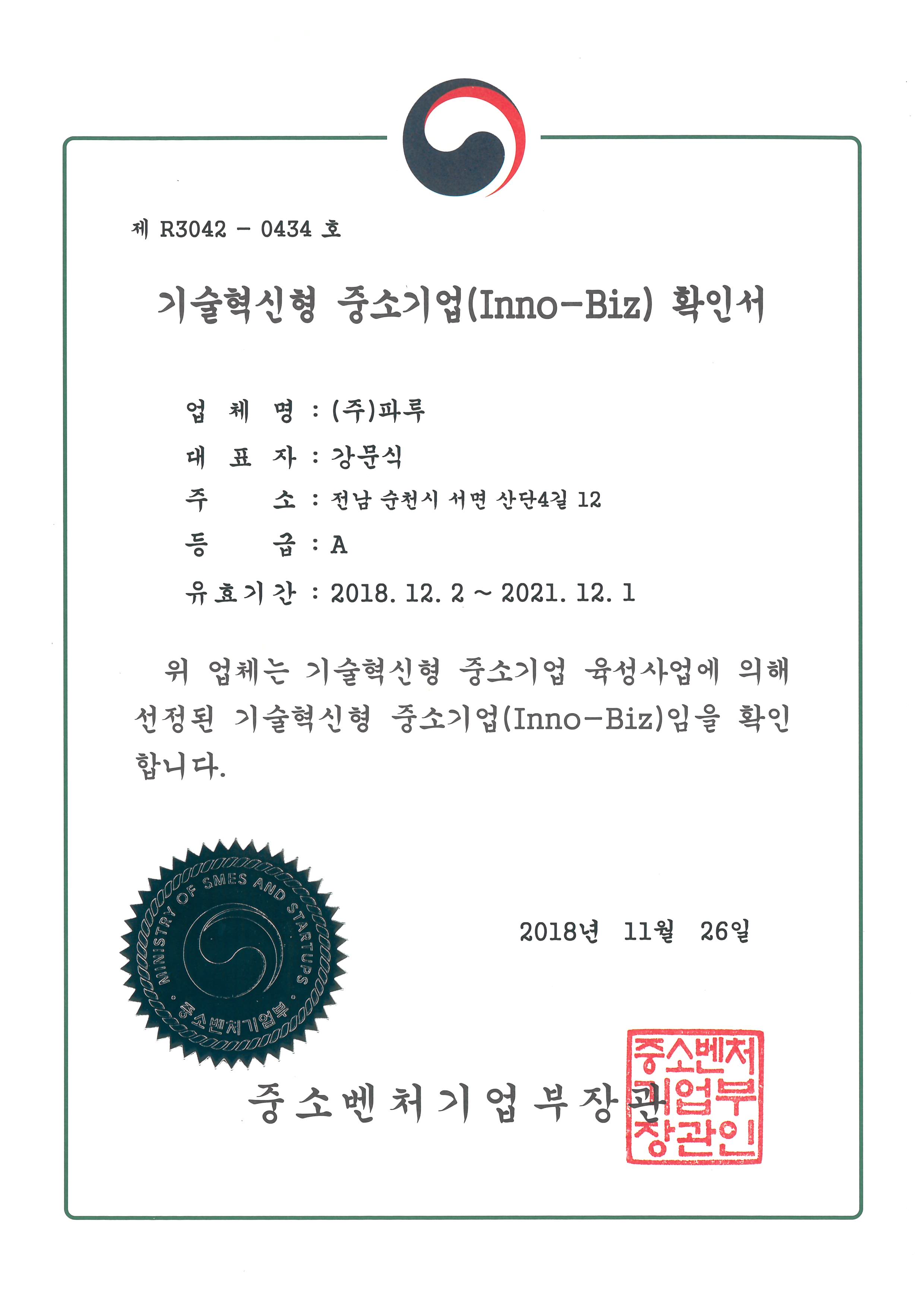 기술혁신형 중소기업(Inno-BIz) 인증서